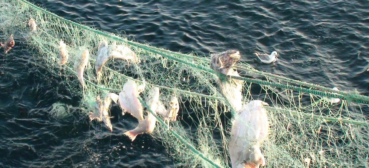 Garn som blir ståande forlatt i sjøen fører til store lidingar for fisk og andre dyr. Bekjempning av tapt og forlatt fiskereiskap er høgt prioritet for norske fiskeristyresmakter. Foto: Fiskeridirektoratet