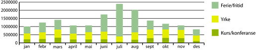 Gjestedøgn fordelt på måned og marked.