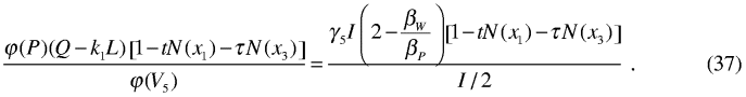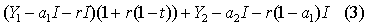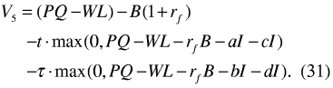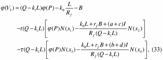 N( x1) og N( x2) kan tolkes som sannsynligheter for at selskapet kommer i posisjon til å betale den skatten som har satsen t. Men de to sannsynlighetene må være justert for å reflektere markedets prising av den systematiske risikoen knyttet til kontantstrømmene. N( x3) og N( x4) tolkes som tilsvarende justerte sannsynligheter for at selskapet kommer i posisjon til å betale den skatten som har satsen