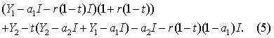 uttrykk for den marginale produktiviteten før skatt av en investering, altså et krav til avkastning på totalkapitalen før skatt. Tabellen viser at de forenklede skattesystemene som er analysert i tilfellene 3 og 4, bidrar til at selskapene er villige til å investere med lavere produktivitet enn de ville ha krevd før skatt. Men usikkerheten omkring skatteposisjonen i tilfelle 5 fører til et krav om høyere produktivitet enn det som var kravet før skatt.