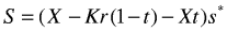 Dette innses lett ved et enkelt eksempel. La X betegne realisert økonomisk resultat i hver periode (X = C – A, der C er kontantstrøm i perioden og A er faktisk verdifall på realkapitalen), K verdien av kapitalen ved inngangen til perioden, r den sikre renten, t den ordinære skattesatsen for overskudd og s* særskattesatsen. Fra drøftingen i punkt 3 har vi at særskatten, S, nå kan skrives som: