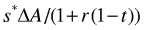 Skattegrunnlaget for særskatten gitt ved (3) innebærer at staten via særskatten går inn og tar en andel, s*, av det faktiske økonomiske resultatet etter overskuddsskatt, og etter at investor har fått kompensasjon for sin finansielle alternativkostnad ved at investeringene ikke utgiftsføres direkte. Ut fra drøftingen ovenfor er det godtgjort at den risikofrie renten etter skatt skal benyttes ved beregning av den finansielle alternativkostnaden så lenge verdien av fradragene er sikre. Dersom vi i stedet definerer en ny særskattesats, s = s*(1-t), kan vi alternativt uttrykke særskatten som (jf. punkt 3):