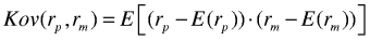 E er forventningsoperatoren. For hvert utfall beregner en produktet av avkastningsavvikene for henholdsvis prosjektet og markedet fra sine forventningsverdier, og disse produktene vektes med sannsynlighetene for hvert enkelt utfall for å komme fram til kovariansen.
