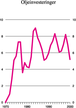 Etter en betydelig nedgang gjennom 1993 og 1994, økte oljeinvesteringene med hele 42 pst. fra 1995 til 1998, jf. figur 3.14. Dette ga kraftige impulser mot fastlandsøkonomien i en situasjon hvor norsk økonomi allerede var preget av en høy kapasitetsutnyttelse innenfor en rekke næringer.