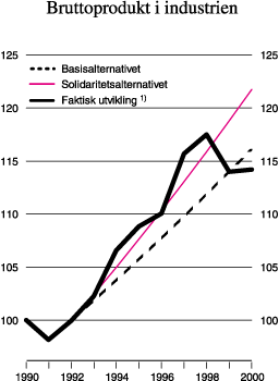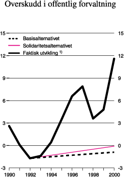 Siden 1992 har utviklingen i norsk økonomi på en rekke områder vært betydelig mer positiv enn lagt til grunn i det såkalte Solidaritetsalternativet, som ble trukket opp av Sysselsettingsutvalget i 1992. Dette belyses nærmere i avsnitt 3.3, som bl.a. viser at sysselsettingen har økt betydelig sterkere enn anslått i Solidaritetsalternativet, mens arbeidsledigheten har avtatt vesentlig raskere. Samtidig har reallønnsutviklingen blitt klart bedre enn det Sysselsettingsutvalget så for seg. Avslutningsvis gis enkelte vurderinger av hva som har ligget bak den økonomiske utviklingen på 1990-tallet.
