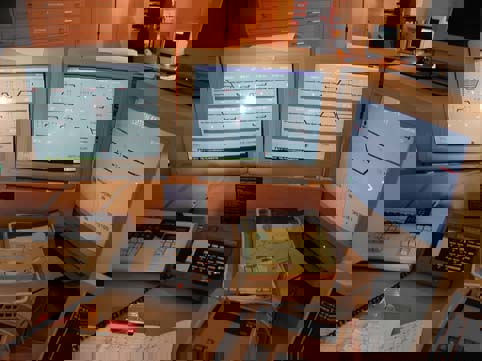 Figur 4.1 Fjernstyringsanlegget for Rørosbanen med to oversiktsskjermer og to detaljskjermer