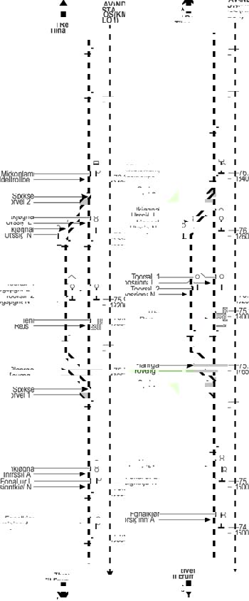 På oversiktsskjermene får togleder informasjon om toggangen og om signalstatus på den enkelte stasjon. I forbindelse med kryssing henter togleder normalt frem detaljbilde for den stasjon hvor kryssingen skal foregå, slik at han enkelt kan se at signaler og veksler er riktig stilt. Figur 4.2 viser ett oversiktsbilde for strekningen Hamar – Tolga og figur 4.3 ett detaljbilde for Løten stasjon. Det presiseres at den viste signalsituasjon ikke gjelder togfremføringen ulykkesdagen.