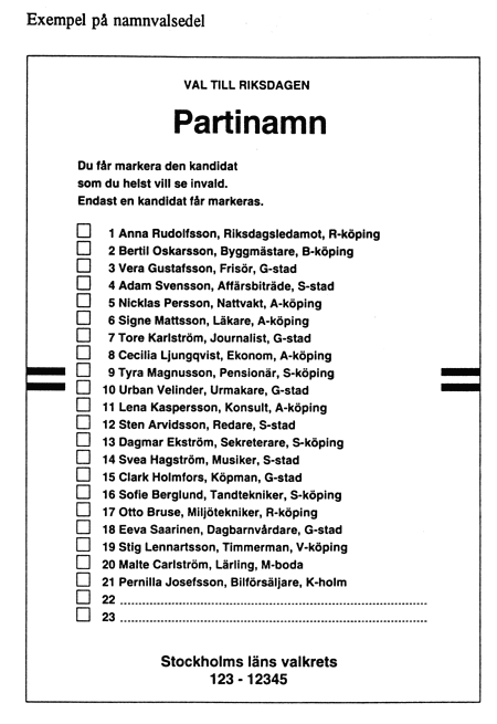 Figur 8.2 Eksempel på stemmeseddel fra Sverige