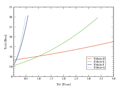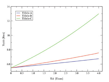 Problemstillingen kompliseres ytterligere av at lekkasjearealet er bestemt under kald tilstand i ettertid ved et overtrykk i størrelsesorden 10 % av overtrykket i beholderen under brannen. Det vil ikke være urimelig å anta at lekkasjearealet kan ha vært trykkavhengig. Altså større under den aktuelle brannsituasjonen.