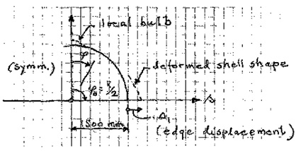To obtain an axi-symmeteric problem, a slight tactical change of the computational model will be made. I.e. the deformed bulb is assumed to be located at the original top of the ellipsoidal shell element. Eq. (3.5) then yields, when upper integral limit is s = 1500 mm