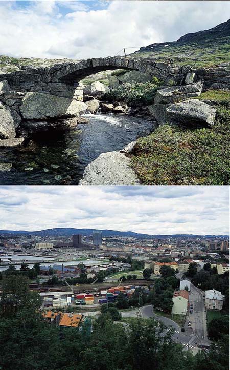 Figur 3.1 Mangfoldet i kulturarven. Bro på Hardangervidda og Oslo sett fra Ekebergåsen