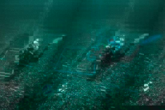 Figur 3.10 Kystens kulturhistorie fins både over og under vann. Å undersøke et kulturminne under vann, stiller spesielle krav blant annet til dokumentasjonsmetoder og praktisk gjennomføring. Spersøyvraket utenfor Hitra er et kravellbygd fartøy fra ca. 1870.