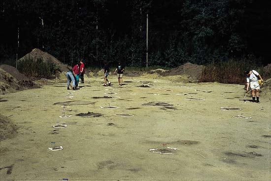 Figur 3.6 Kunnskap om mennesker og samfunn i forhistorien øker hele tiden takket være utgravninger og forskning. Spor etter hus fra jernalderen undersøkes på Veien ved Hønefoss.
