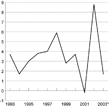 199419951996199719981999200020012002*2003*Gj.snitt 1994-03