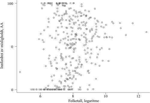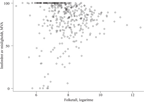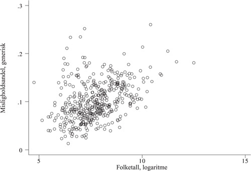 Figur 1.4 Misligholdsandel og kommunestørrelse
