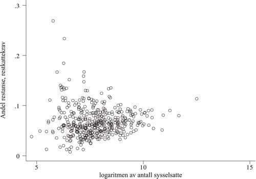 Figur 1.6 Restanseandel og kommunestørrelse, restskatt.