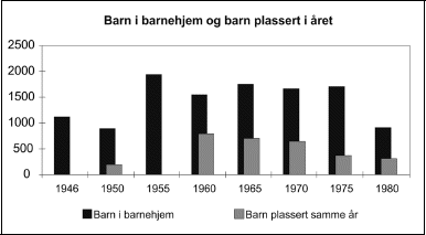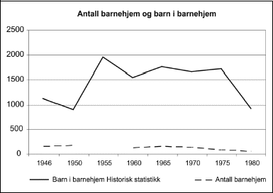 Kilde: Antall barn fra Historisk statistikk 1994. Antall barnehjem fra Statistisk årbok 1982