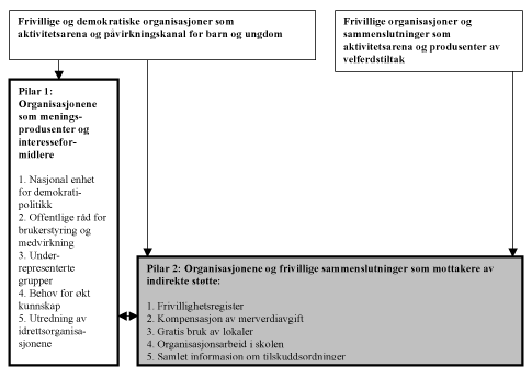 Utvalgets forslag som vedrører organisasjonene som mottakere av direkte økonomiske tilskudd og mottakere av indirekte støtte, er i høy grad innrettet mot å styrke organisasjonene som meningsprodusenter og interesseformidlere. Det er dette – styrking av organisasjonenes samfunnsmessige posisjon – som er utvalgets hovedsiktemål.