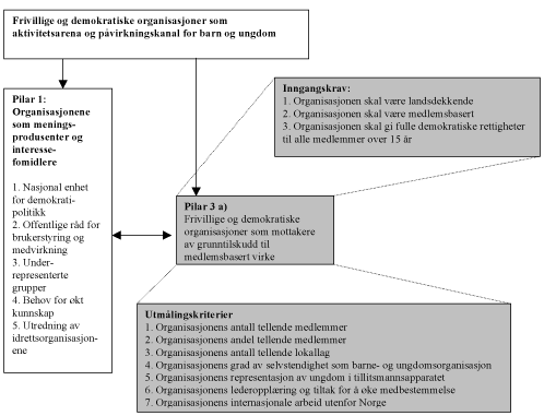 Statlig støttepolitikk overfor frivillige barne- og ungdomsorganisasjoner rettes mot organisasjoner og sammenslutninger som ved sine vedtekter kan vise til at barn og ungdom gis formell innflytelse over arbeidet i organisasjonen.