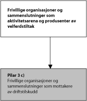 Selv om utvalget med begrunnelse hentet fra St. meld. nr. 27 (1996-1997) «Om statens forhold til frivillige organisasjoner» kan argumentere for at også disse ordningene har elementer av å være tilskudd til organisasjonenes medlemsbaserte virke, mener utvalget at tilskuddene i større grad er innrettet mot organisasjonenes faglige og ideologiske basis. Utvalget mener derfor det er riktig at fagdepartement og –direktorat fortsetter forvaltningen av disse tilskuddene til organisasjonene.