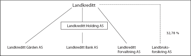 Før eierkontrollreglene i finansieringsvirksomhetsloven ble endret i 2003 (se nedenfor avsnitt 4.2), var Landkreditt Bank AS indirekte eiet av Landkreditt gjennom Landkreditt Holding i henhold til en midlertidig og tidsbegrenset dispensasjon gitt 7. desember 2001 av Finansdepartementet med hjemmel i daværende finansieringsvirksomhetslov § 2-2 annet ledd nr. 11. Eierkontrollreglene i § 2-2 forutsatte den gang at en bank som hovedregel bare kunne eies 100 prosent av et morselskap i form av forsikringsselskap, eller av et morselskap som etter sine vedtekter ikke skulle drive annen virksomhet enn å forvalte sine eierinteresser i finanskonsern. Uten dispensasjon etter lovens § 2-2 annet ledd nr. 11 kunne en kredittforetak ikke eie 100 prosent av en bank direkte eller indirekte gjennom et holdingselskap. Samtidig godkjente Finansdepartementet konsernstrukturen i Landkreditt-konsernet med hjemmel i finansieringsvirksomhetsloven § 2a-6 annet ledd.