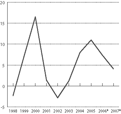 | 1998 | 1999 | 2000 | 2001 | 2002 | 2003 | 2004 | 2005 | 2006* | 2007* | ||