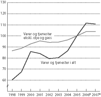 Figur 6.2 Bytteforholdet overfor utlandet. 2005=100