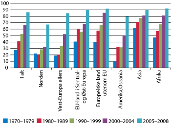 Kilde: United Nations, Department of Economic and Social Affairs, Population Division (2009), Trends in International Migrant Stock: The 2008 Revision, United Nations database, POP/DB/MIG/Stock/Rev.2008