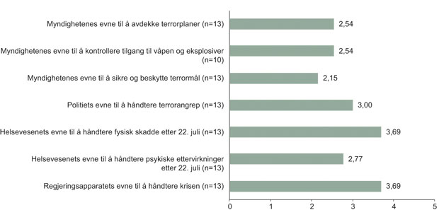 Forklaring, statsminister Stoltenberg, 15. juni 2012. Dilemmaet har også en annen side. Et av talepunktene som ble utarbeidet for statsministeren med sikte på å forsikre befolkningen om at myndighetene hadde kontroll og gjorde alt som kunne gjøres, lød som følger: «All ekspertise og ressurser er satt inn for å få kontroll og oversikt over situasjonen. Planverket som politi og redningsetater har øvd på, er satt i verk.» Den siste setningen var til dels misvisende, og for så vidt egnet til å skape en falsk trygghetsfølelse. Det riktige var at politiet og POD ikke hadde satt i verk sitt terrorplanverk.