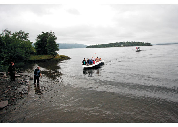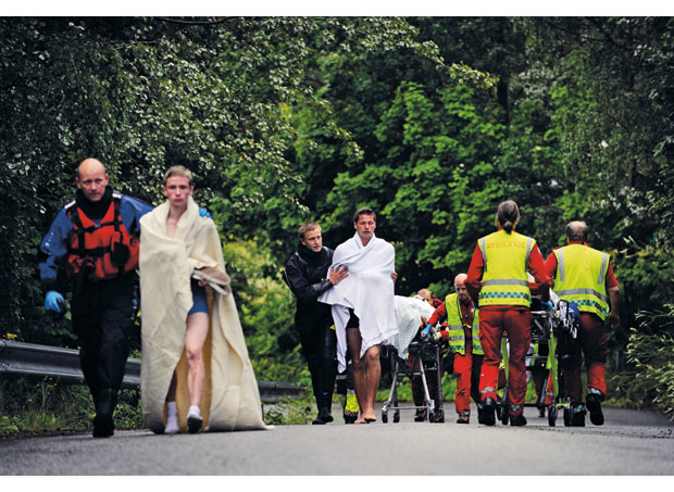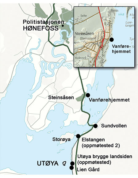 De første meldingene om tragedien på Utøya nådde SMK allerede kl. 17.30, snaut ti minutter etter at massakren begynte. Kl. 17.43 ringte AUF-leder Eskil Pedersen til politisk rådgiver Fossum Beyer, som omgående varslet statsministeren. To minutter senere ble Stoltenberg oppringt av visepolitimester Andresen, som bekreftet at det ble skutt på Utøya, men at tallet på drepte og sårede var usikkert. SMK, «Hendelseslogg: Bombeangrepet i regjeringskvartalet og angrepet på Utøya 22. juli 2011», 22JK, j.post 619.