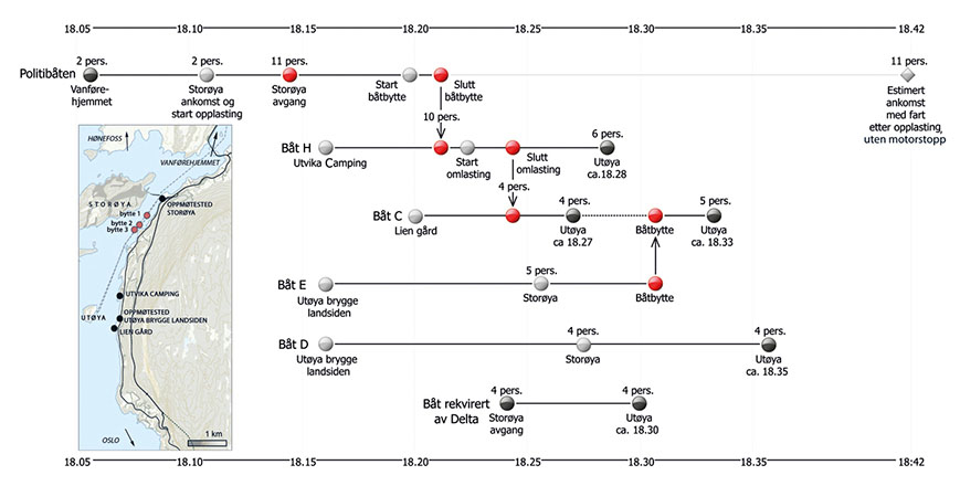 OPD, «Tidslinje over hendelsene i Oslo 22. juli 2011», 22JK, j.post 379.