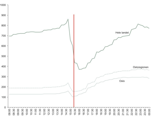 Figur 6.3 Kl. 15.24 Politiets patruljer rett før bomben eksploderte.