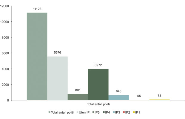 Det er 3608 politiutdannende under 45 år ansatt i etaten som ikke har IP-godkjenning. Kommisjonens analyse, TTAdata fra PDMT.