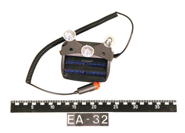 Figur 15.5 Blålys til å feste i bilen. Et blålys var montert i bilen da den kjørte inn i regjeringskvartlalet og ned til Utøya brygge landsiden.