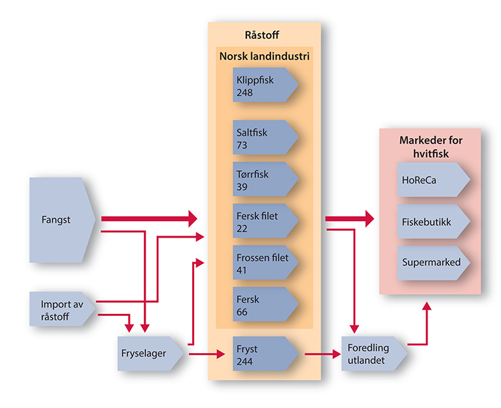 På tilsvarende måte er etterspørselsforholdene ekstremt viktige for sjømatindustrien. Pelagisk sektors suksess med å flytte store deler av oppfisket kvantum fra mel og olje til konsumanvendelse, var betinget av tilgangen til det østeuropeiske markedet. Markedsføring av norsk fisk i utlandet kan i noen grad påvirke etterspørselen etter fisk i en positiv retning, og derigjennom verdiskaping og lønnsomhet. I siste instans er det etterspørselsforholdene i markedene som bestemmer markedsprisene på sjømatindustriens produkter og derigjennom hvordan råstoffet anvendes. Endringer i kjøpsatferd, for eksempel som følge av dårligere omdømme for norsk fisk (utslipp av miljøgifter, miljøkatastrofer, m.m), kan gi negative følger for etterspørselen. På tilsvarende måte kan handelsrestriksjoner, manglende markedsadgang, tariffære- og ikke-tariffære handelsbarrierer gi norske produsenter konkurranseulemper i eksportmarkedene.