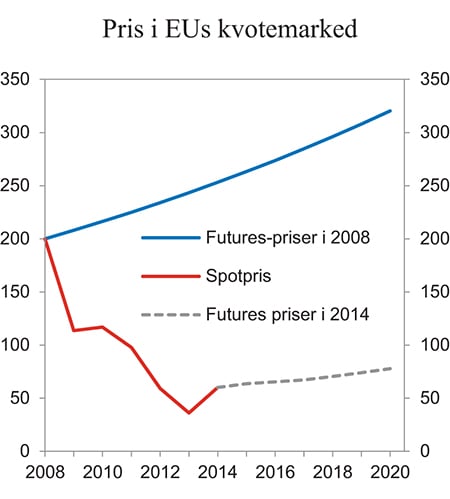 Siden gjennomsnittsprisen på utslipp av klimagasser i Norge er på høyde med en pris som anslås å være i tråd med togradersmålet, gir det liten mening ytterligere å øke prisnivået i Norge. Norge vil kunne bidra med tiltak i andre land som har betydelig lavere kostnad enn gjennomsnittlig karbonpris innenlands.