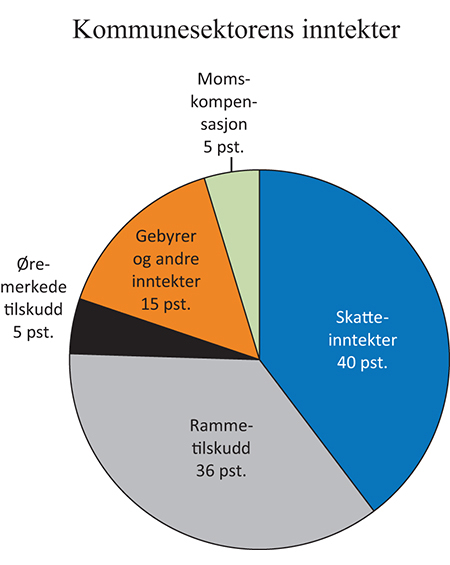 Kommunesektoren finansieres av overføringer fra staten, egne skatteinntekter og gebyrer. Skatteinntektene varierer betydelig mellom kommunene, men disse forskjellene utjevnes i stor grad via inntektssystemet. Et viktig mål med inntektssystemet er at alle kommuner og fylkeskommuner skal ha samme forutsetninger for å gi innbyggerne et likeverdig tjenestetilbud.