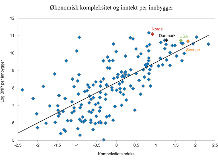 En rekke undersøkelser viser at Norge kommer ut med middels resultater når det gjelder innovasjon, forskning og utvikling i næringslivet. Norge skårer også lavt på nyetablering, lite kompleksitet i produktene som eksporteres, og relativt lite privat eierskap. Investeringene i bedriftsspesifikk kunnskapskapital (immateriell kapital) er lave.