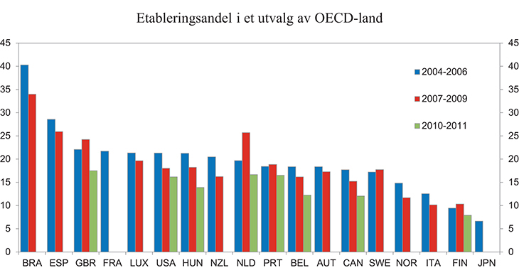 Figur 8.9 Etableringsandel i et utvalg OECD-land. Prosent av alle foretak