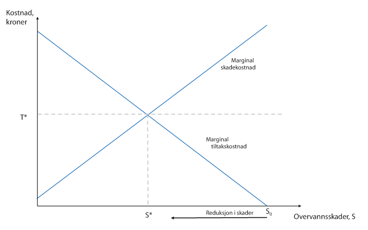 Et overvannstiltak bør ideelt sett utløses av at det vil være samfunnsøkonomisk lønnsomt å gjennomføre det. Utvalget legger til grunn at tiltakene bør være samfunnsøkonomisk lønnsomme. Gitt usikkerheten i skadevirkninger og tiltakskostnader, er det vanskelig å sikre lønnsomhet i hvert enkelt tilfelle. Det er derfor hensiktsmessig å formulere dette som en målsetting, ikke som et absolutt krav for hvert enkelt tilfelle.