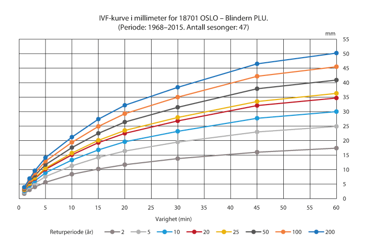 Ved dimensjonering av avløpsanlegg skal det benyttes en klimafaktor på 1,5 for forventet økning i nedbørintensitet.