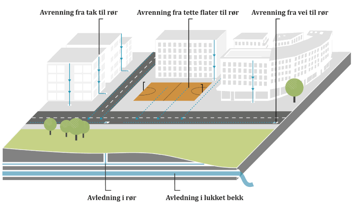 Avledning av overvann i ledninger ble i over 100 år ansett som et tilstrekkelig tiltak for å hindre skader fra overvann.