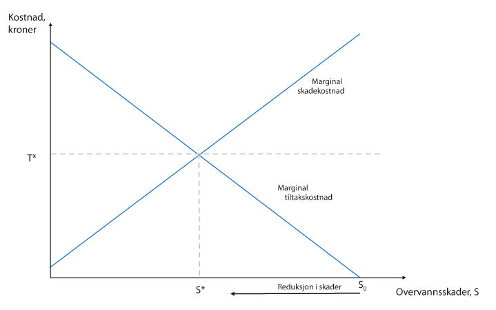 Figur 22.2 Optimalt nivå på skadereduksjoner for overvann