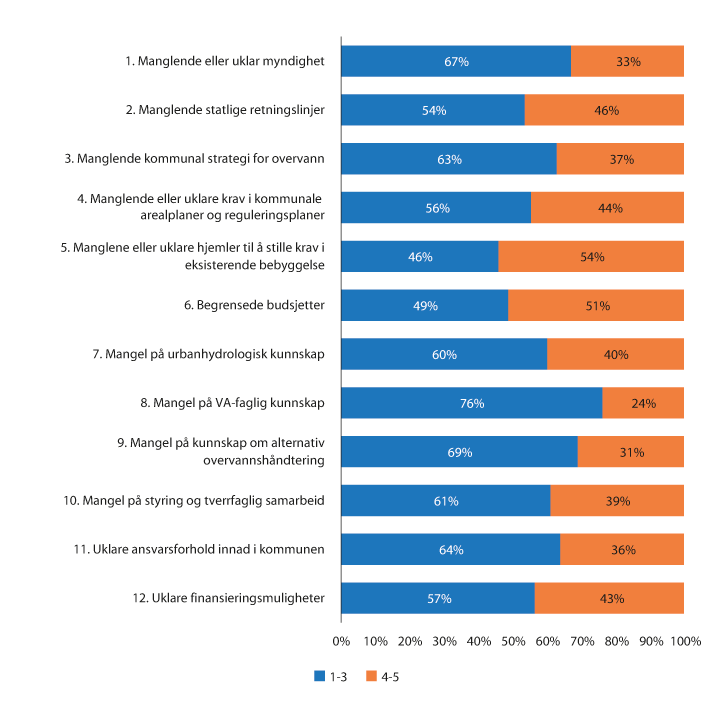 Figur 1.4 Barrierer som vanskeliggjør overvannshåndteringen i kommunene
