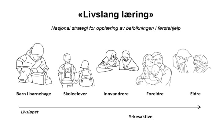 Det bør utvikles en nasjonal førstehjelpsstrategi med mottoet Et program for livslang læring.