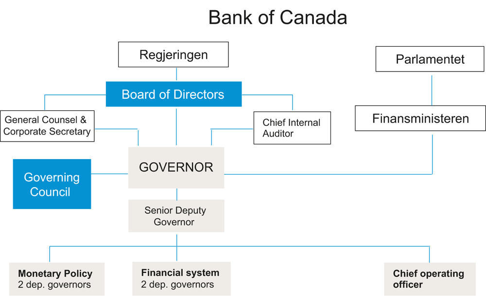 I kapittel 16 er styring og organisering i noen utvalgte sentralbanker nærmere omtalt.