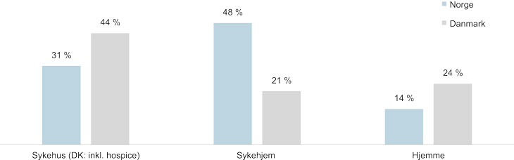 I Norge dekkes behovet for omsorg i livets sluttfase på ulike måter. Et betydelig antall pasienter dør i vanlig sykehusavdeling eller sykehjemsavdeling. I Helsedirektoratets rapport (IS-2278, 2015) beskrives dagens tjenester og finansieringen av disse.