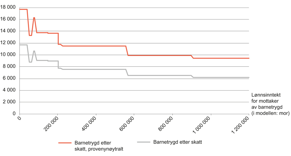 Dette tallet atskiller seg noe fra offisiell statistikk siden barnetrygden her er simulert.