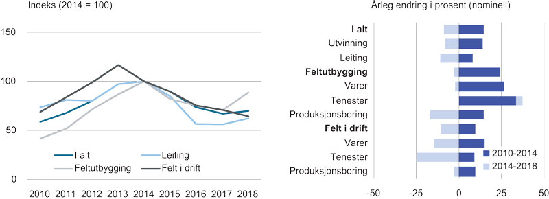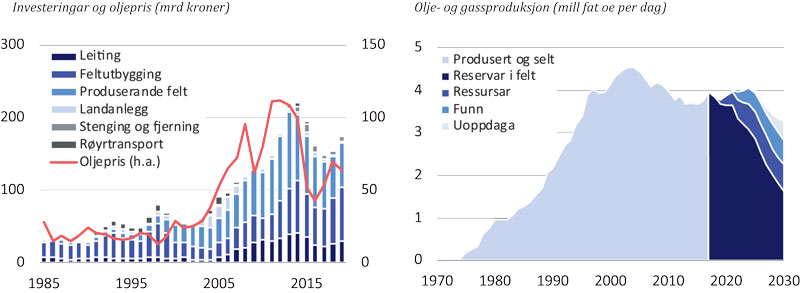 Utviklinga i olje- og gassnæringa dei siste 15 åra er prega av eit kraftig oppsving, og eit tilsvarande kraftig tilbakeslag, med utviklinga i oljeprisen som ei hovudforklaring. Gjennom perioden frå årtusenskiftet og fram til 2014 såg ein ei kraftig og nærmast kontinuerleg auke i oljeselskapa sine investeringar, medan selskapa sidan 2015 har vist atterhald både når det gjeld investeringar og andre utgifter (Bøhm og Mohn, 2017).