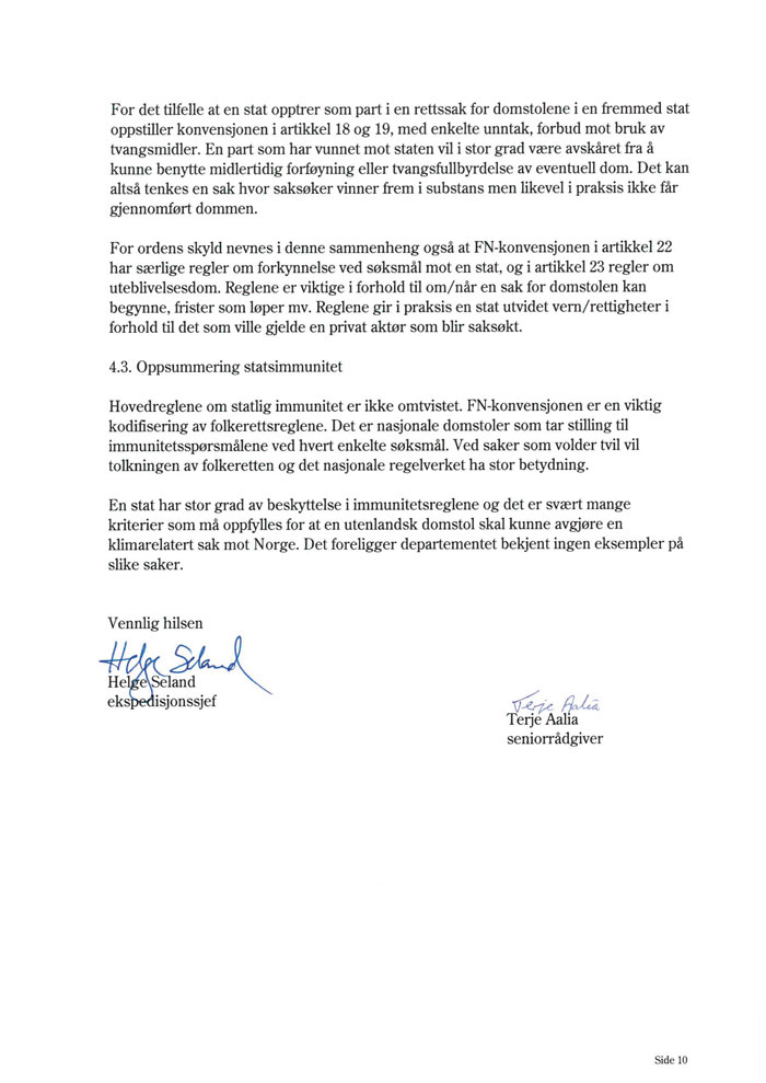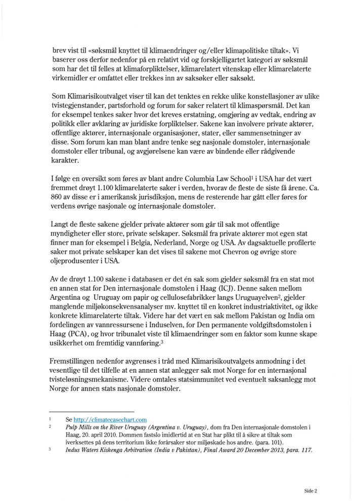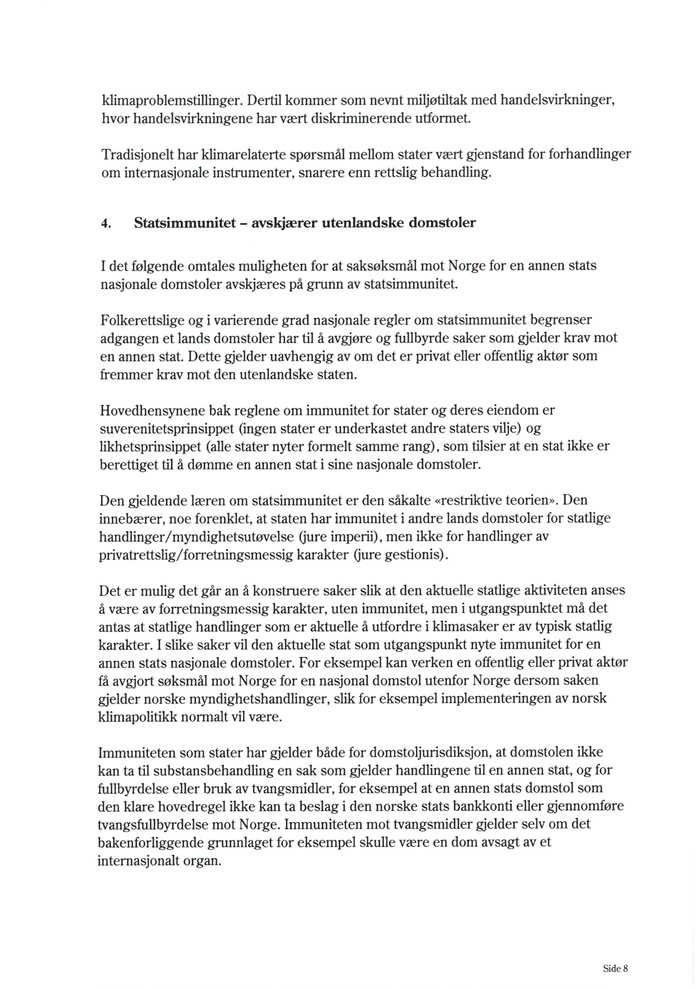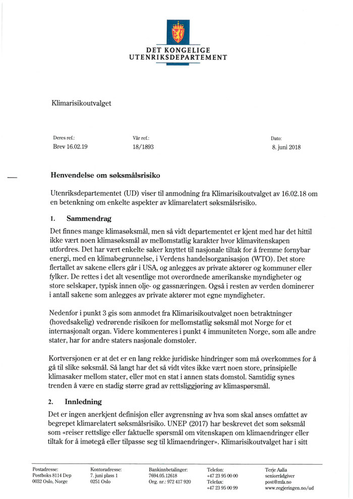 8 Brev fra Utenriksdepartementet om klimarelatert søksmålsrisiko